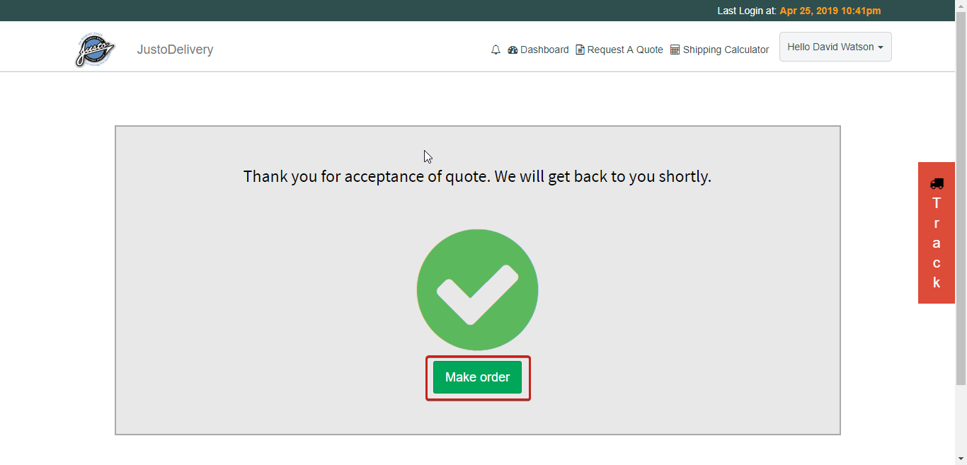 OR a user can create an order directly without ‘requesting a quote’ from the user dashboard.