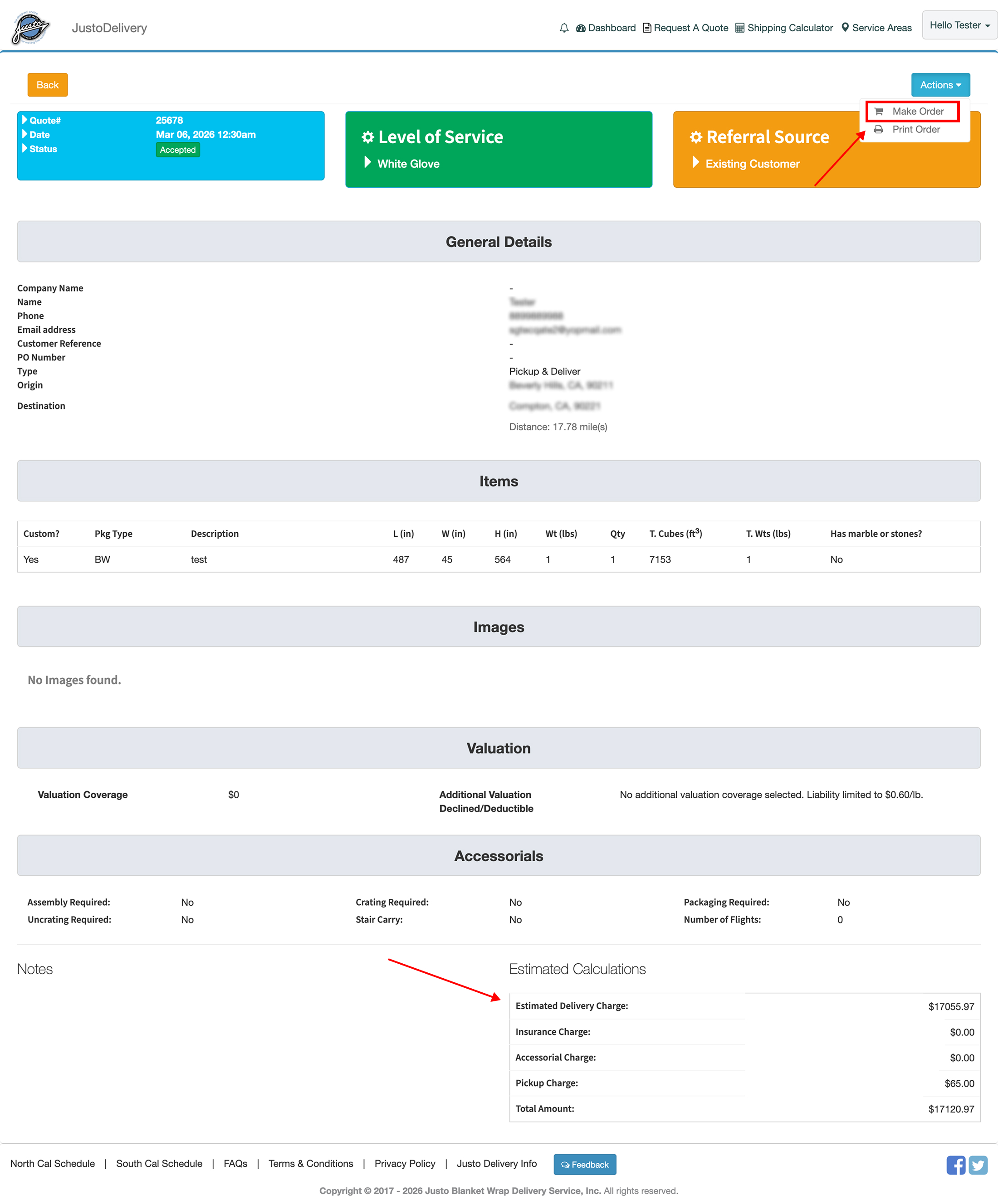 Then the user can accept the estimate either directly from email OR from quote ‘view’ page on his account. User can also convert the quote into an Order from there.