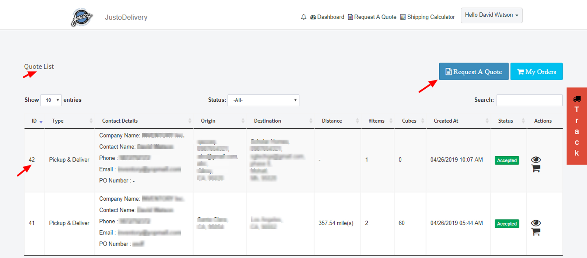 This page will display a list of quotations requested (if any) by the user. This is a page where the user can ‘Request a Quote’ for his order.