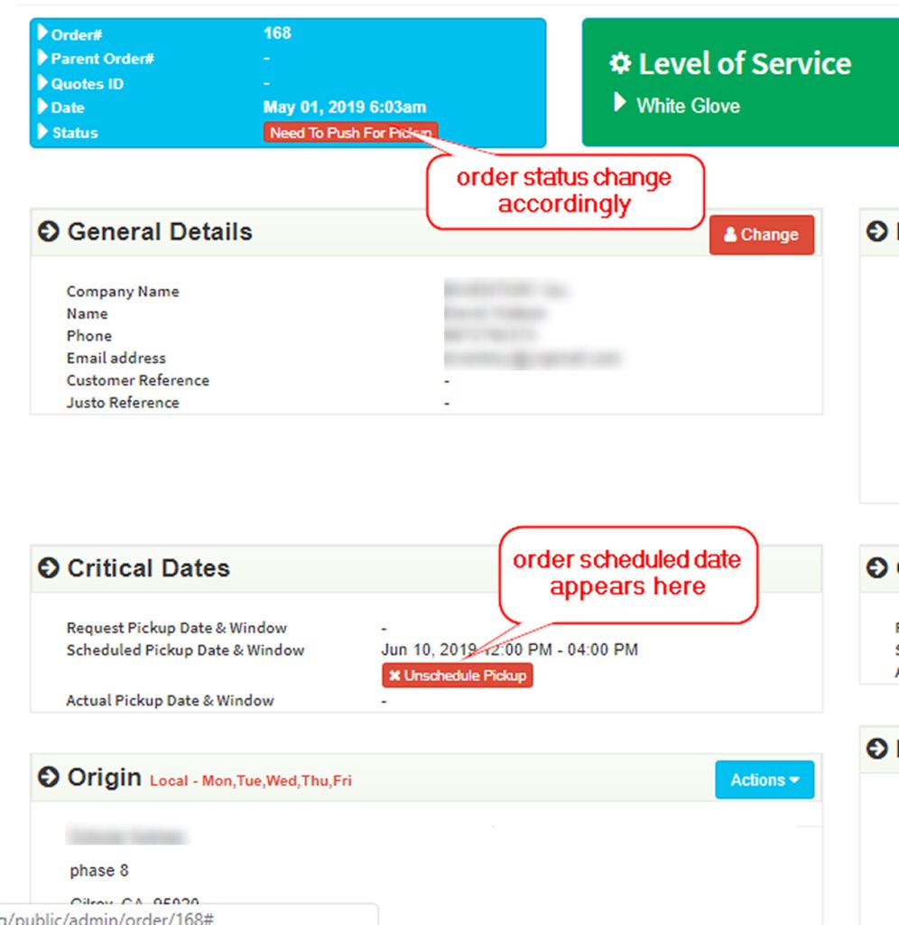 - Here you can check the ‘Status‘ of this order And ‘Scheduled Pickup Date & Window‘.