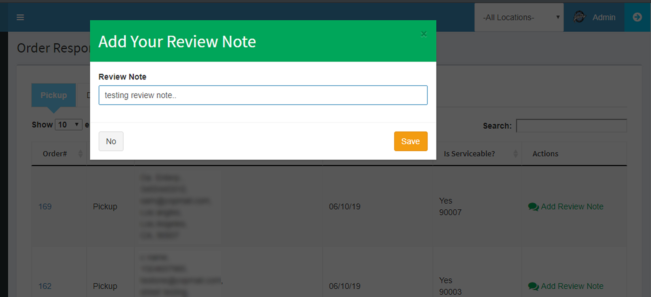 - Inside the ‘Order Responded‘ list, you can also add ‘Review notes‘ for any of the responded orders which will reflect on ‘order notes‘ inside the order detail page.