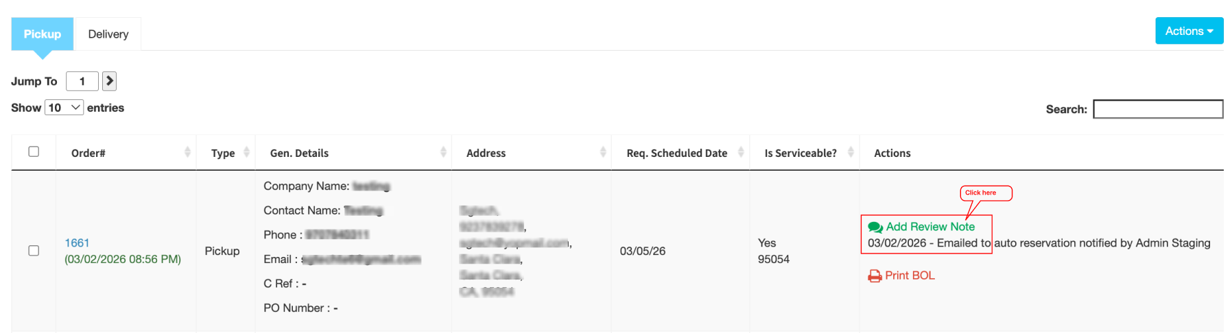 - Under the scheduling tab, there is a sub-tab called ‘Order not in service area‘ which contains all the orders having zip codes those which are not serviceable.